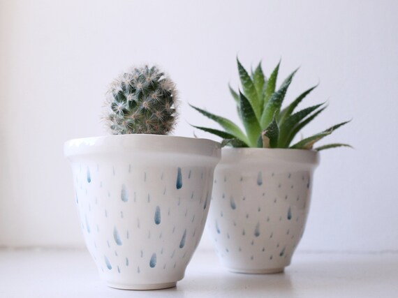 Ceramic Plant Pot With Blue Drip Design Cactus Pot Succulent Pot Planter Flower Pot Indoor Planter