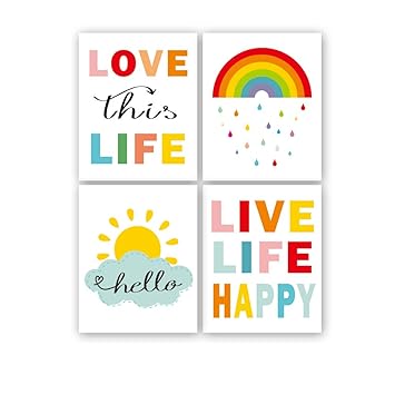 Colorful Rainbow And Sunshine Quotes Art Print Set Of 4 8 X10 Inspirational Canvas Poster Painting Weather Nursery Wall Art For Classroom Or Kid Room